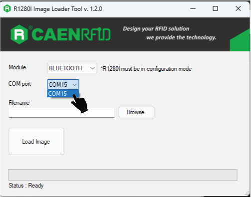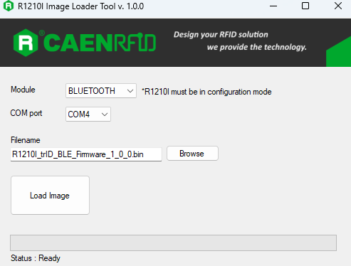 To change the Bluetooth mode from BLE to BT, the same steps are to be followed as mentioned above, only the R1210ItrID_BT_firmware.bin file is to be used instead of R1210ItrID_BLE_firmware.bin.