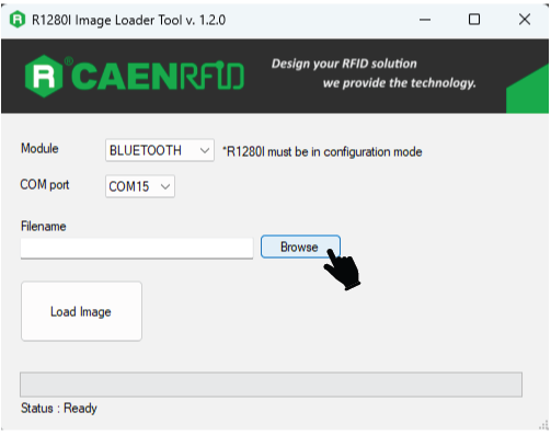 10. Browse the R1210ItrID_BLE_firmware.bin file as shown in image below.
