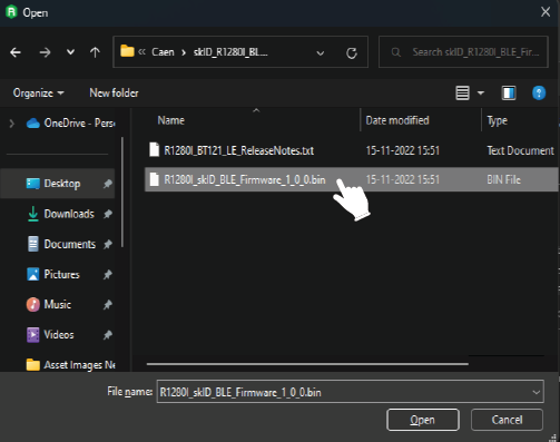 10. Brows the R1280I_skID_BT_firmware.bin file as shown in image below.