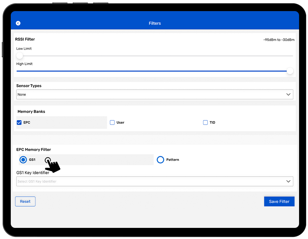 TagMatiks Wedge gives you the ability to filter out the tags according to a specific scheme of encoding. RFID tags used in retail and in the Walmart mandate are encoded according to the SGTIN GS1 format.