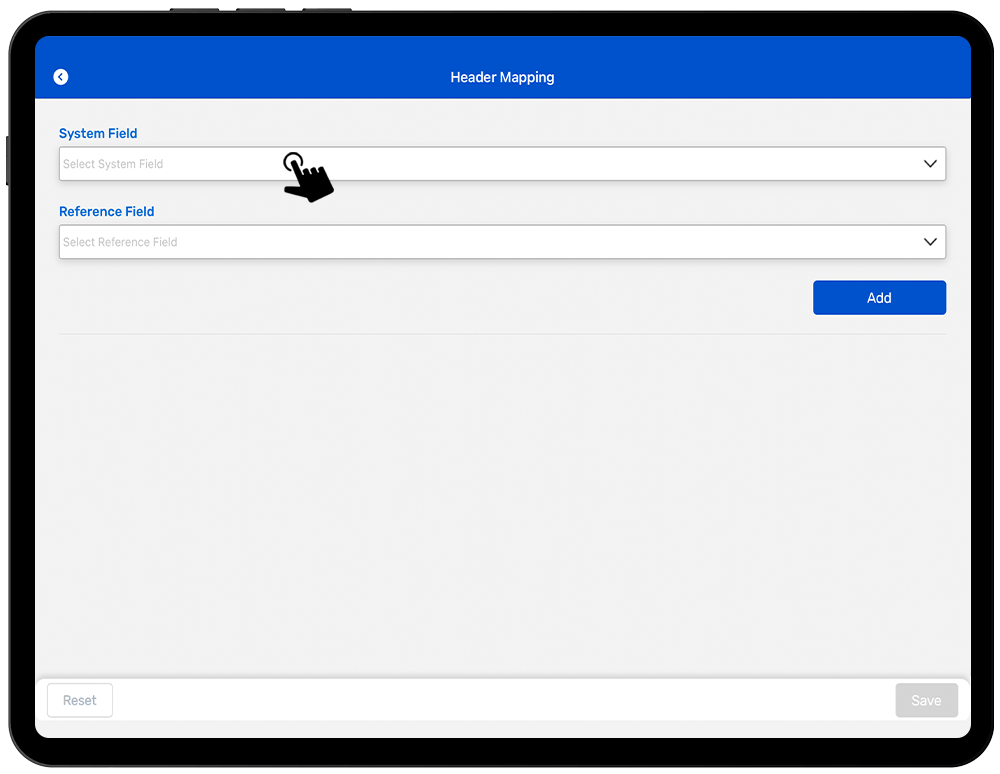 4. Click on the drop-down icon of “Reference Fields” to map the Header of reference file with the default selected field of the TagMatiks Wedge application.As shown in Fig 1.1.
