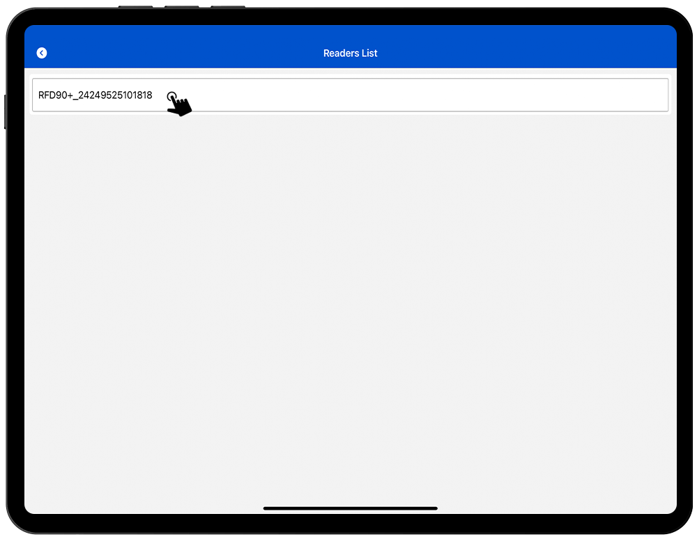 7. Click on RFD90 and bring the RFD90 reader close to the iOS device.