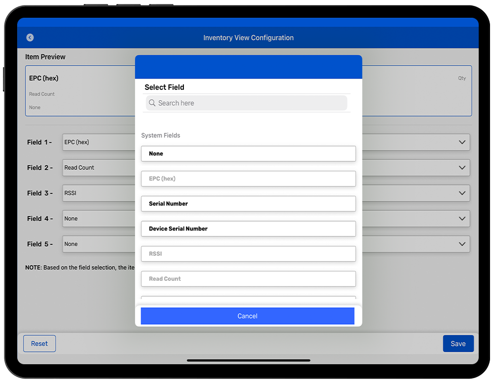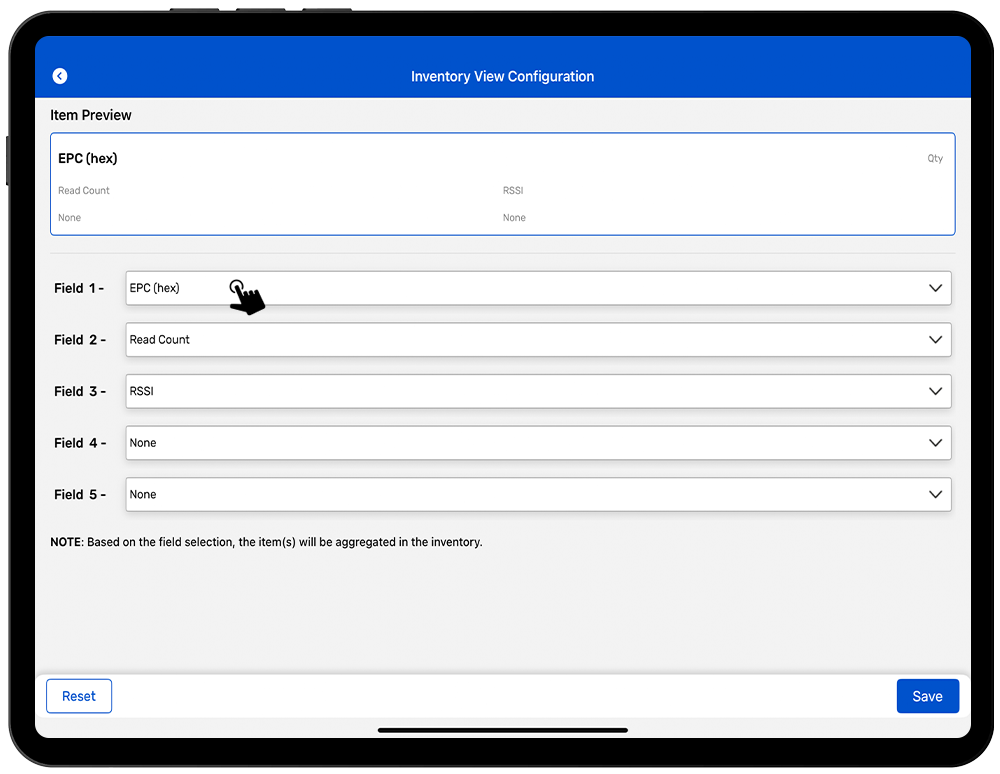 The data view feature allows you to customize the view when conducting inventories so you can see data that is best fit for your application. To configure the data view settings of Inventory operation, in TagMatiks Wedge application; please follow steps below: