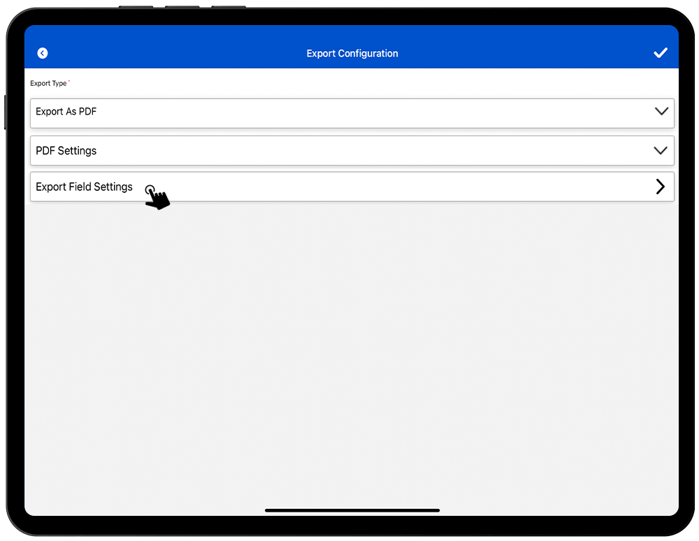 7. To save these field settings, click on the “ ✔️ ” (check mark) icon on the Top – Right hand side of the application. As shown in Fig 2.9.