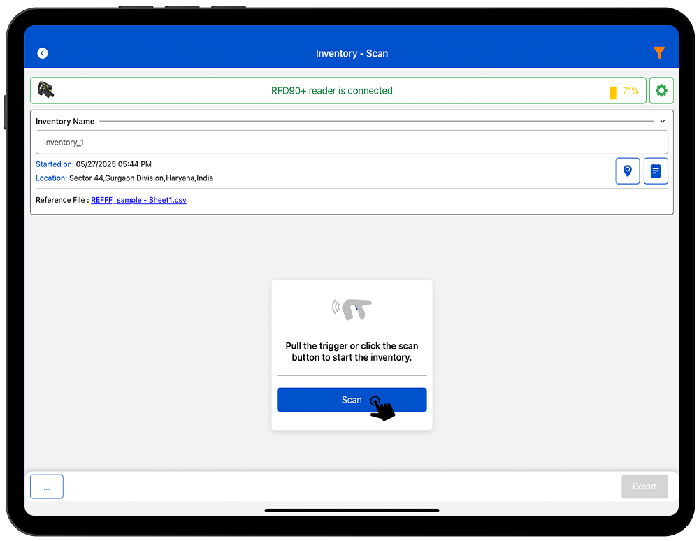3. Then create a new Inventory and Click on Scan Button to scan the RFID Tags. As shown in Fig 3.1.
