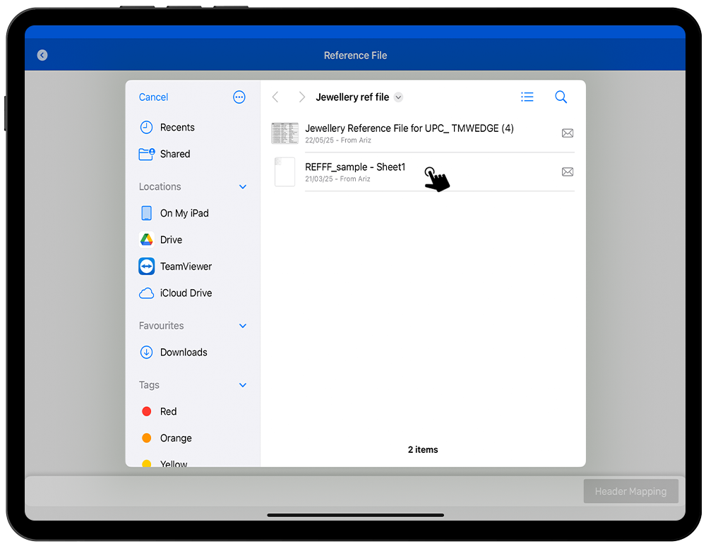 This document illustrates how your UPC list can be used as a “Reference file” and link or combine with the “TagMatiks Wedge” inventory data. This document will guide you the procedure to map the Headers of a Reference file and then show them as the Inventory attributes in TagMatiks Wedge application.