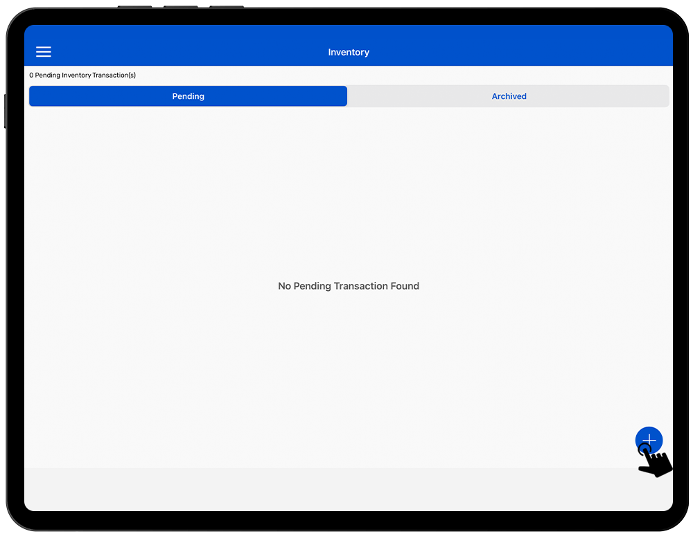 3. Create a new Inventory transaction, by clicking on the “+” button on the right bottom of the application. As shown in Fig 1.1.