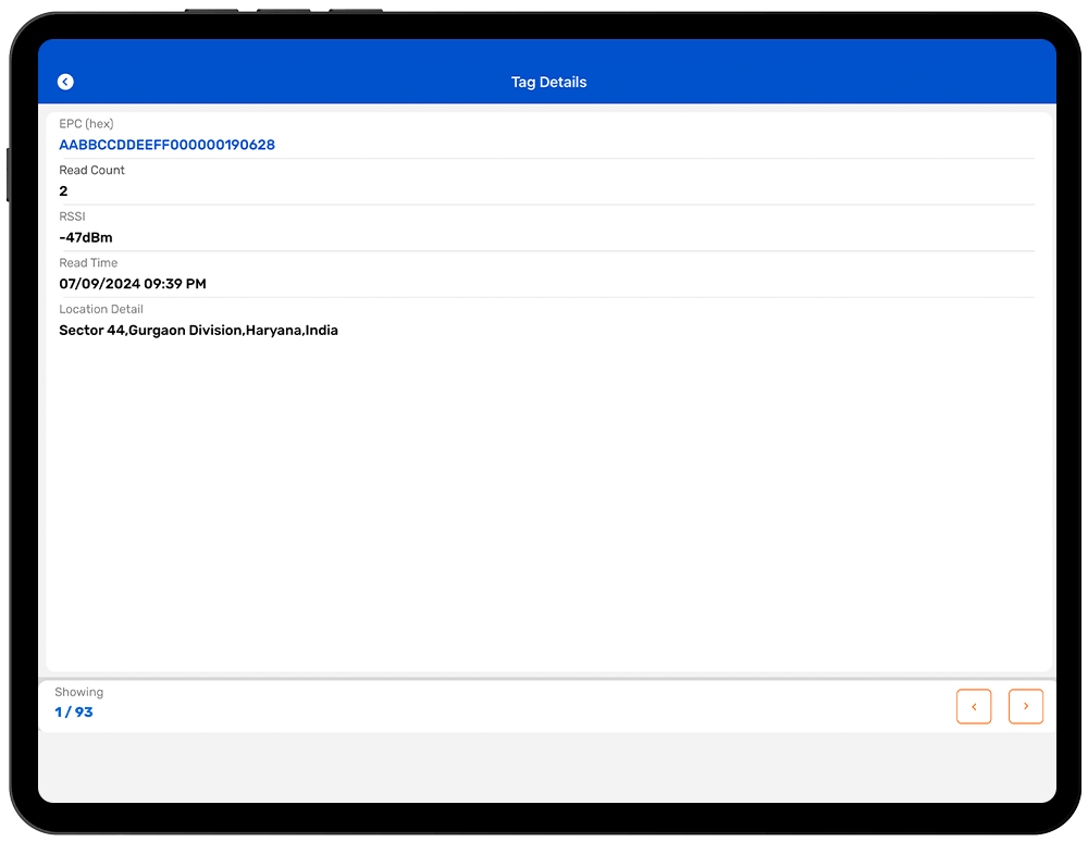 11. As a result, the read tags will populate on the application window, as shown in below image[Fig 1.7].