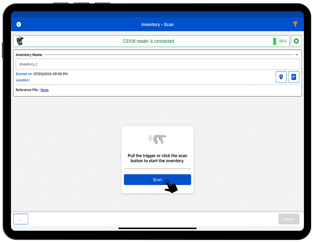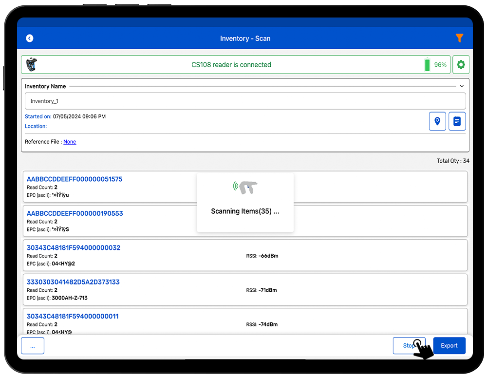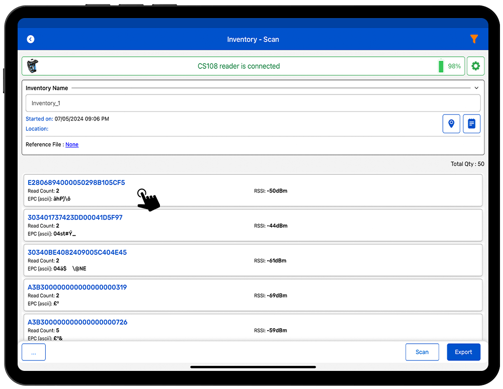 12. Click on the Scan soft button to start scanning RFID Tags. As shown in Fig 1.1.
