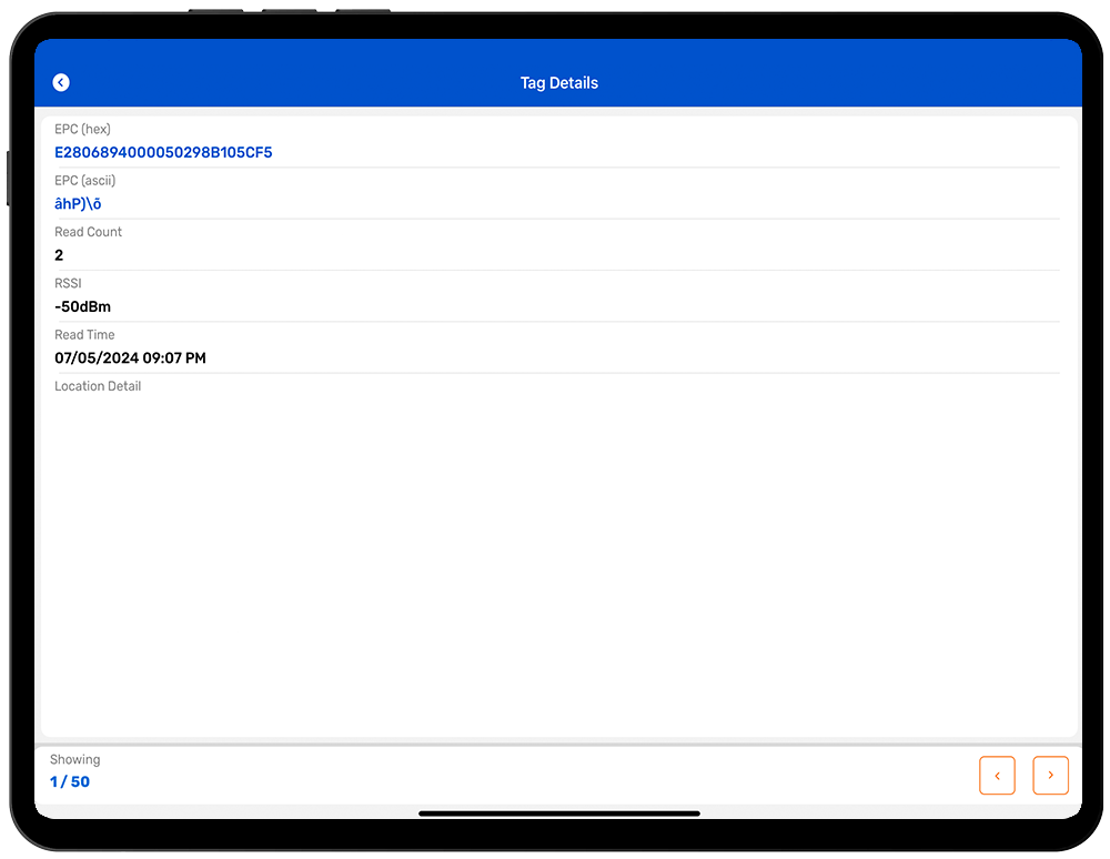 15. Click on RFID Tag to see the Tag Details .In Tag Details page, you can see the ASCII details. As shown in Fig 1.4.