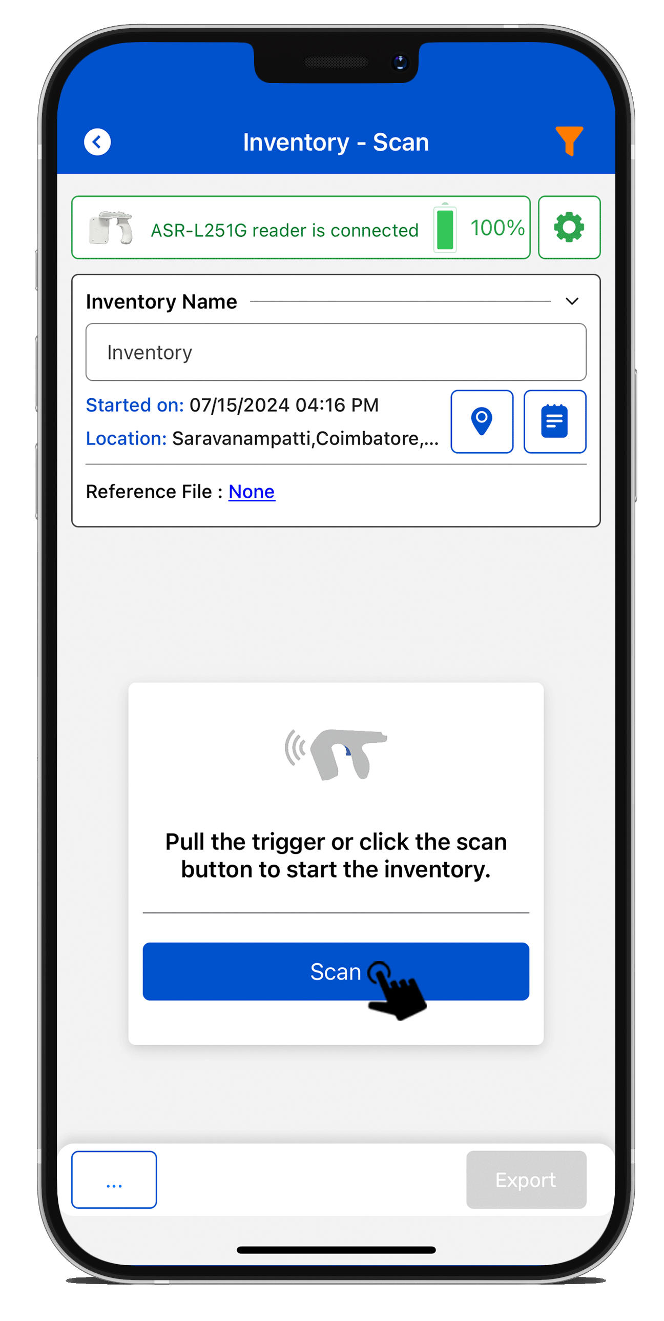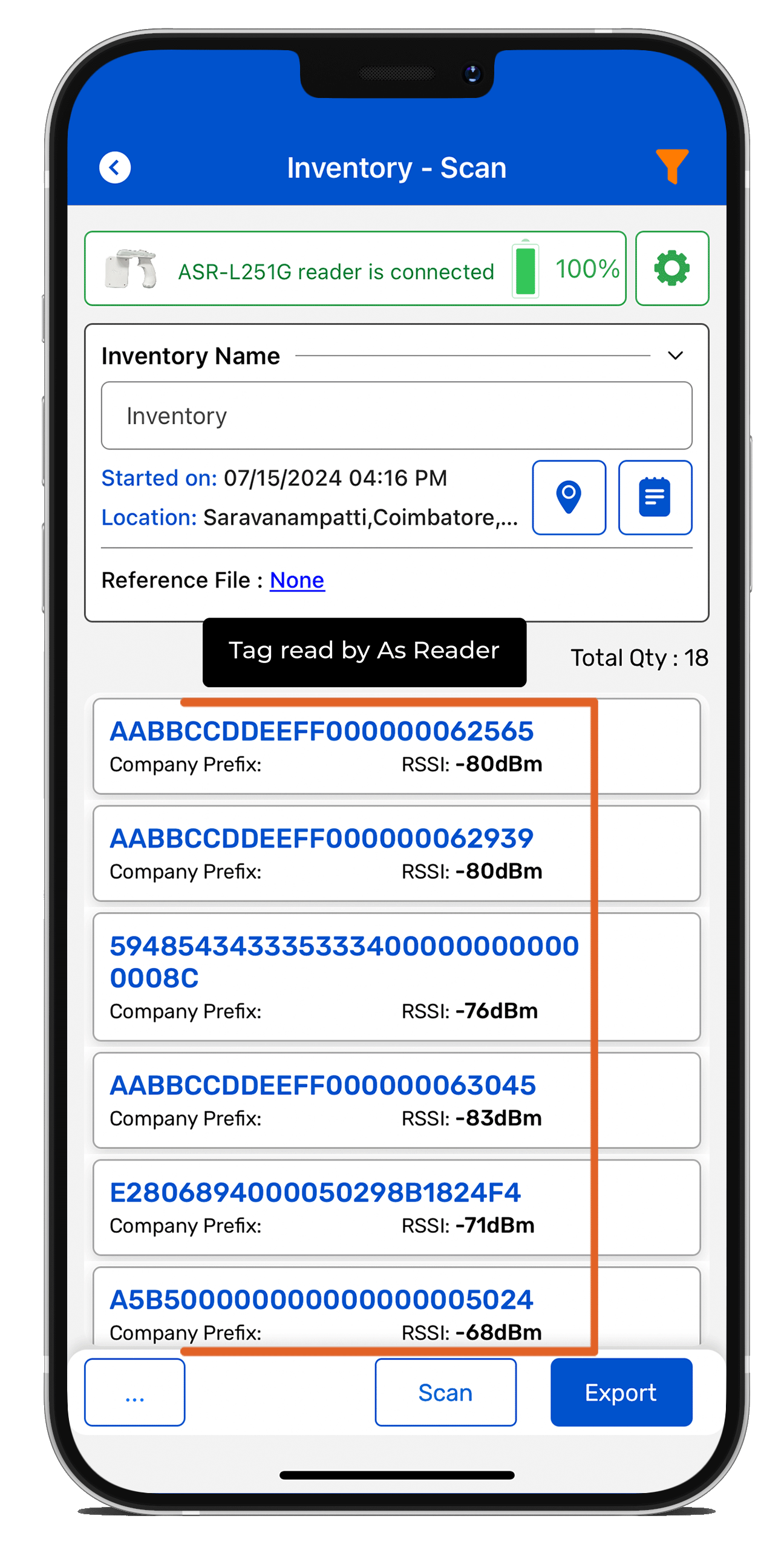 3. Click on the “Scan” button (on the right bottom of the application) to read the RFID tags.As shown in Fig 0.6.