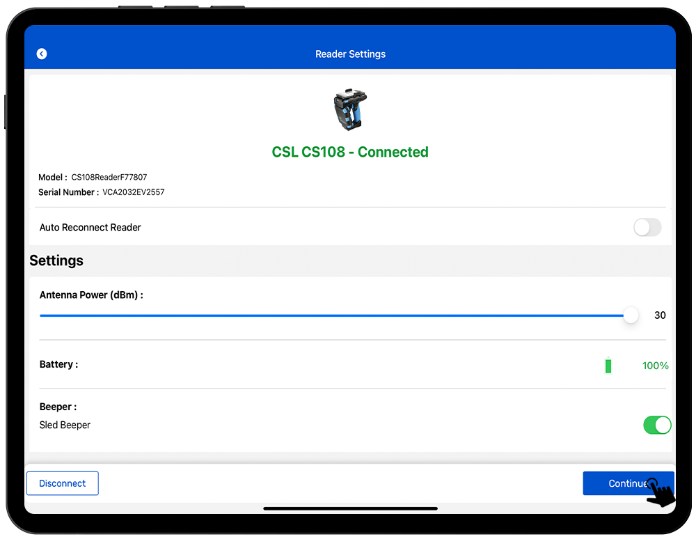 NOTE: Toggle the Auto Reconnect option to let the application automatically connect to the reader.