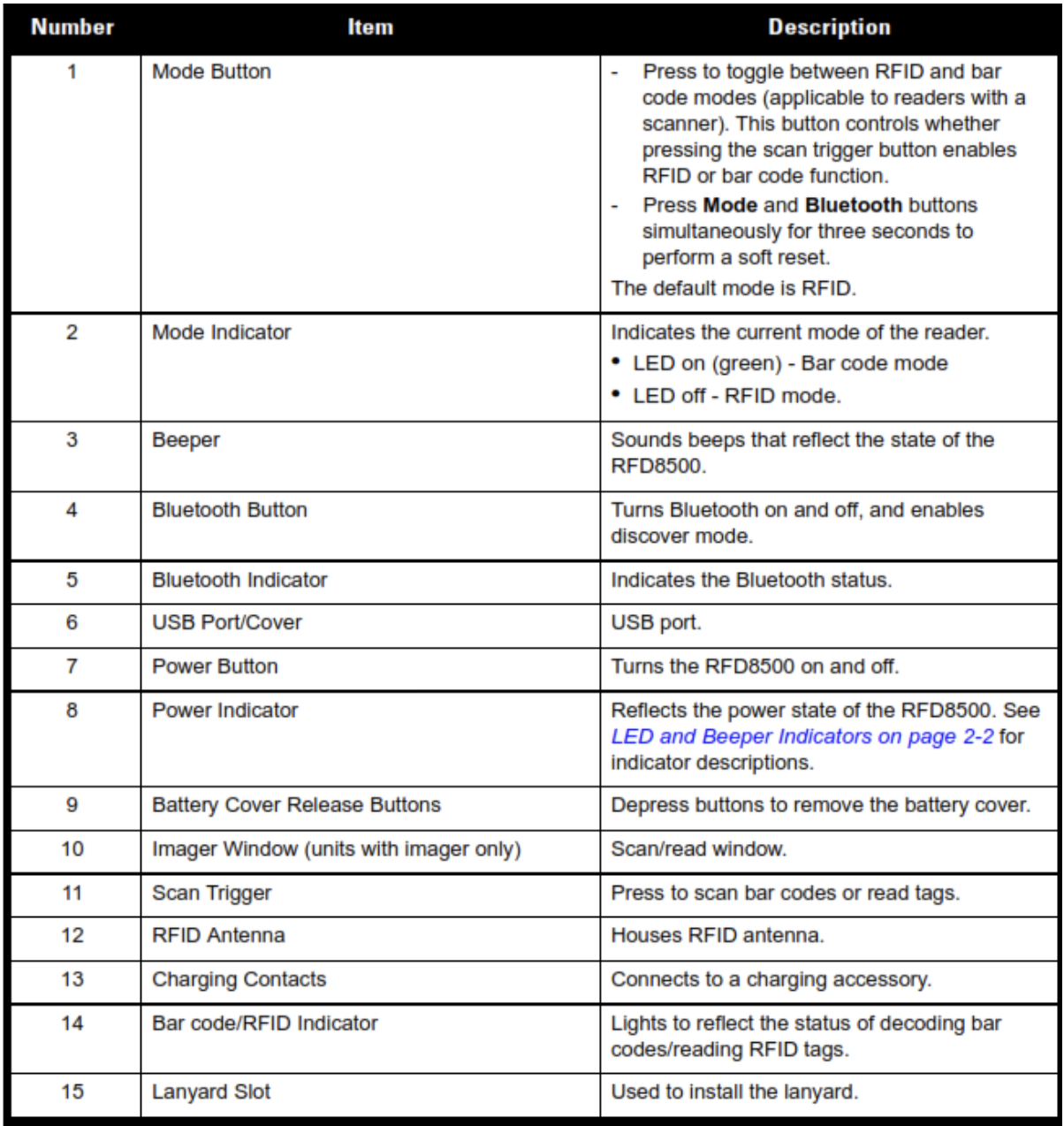 Please see the RFD8500 User Manual for complete understanding of these readers.