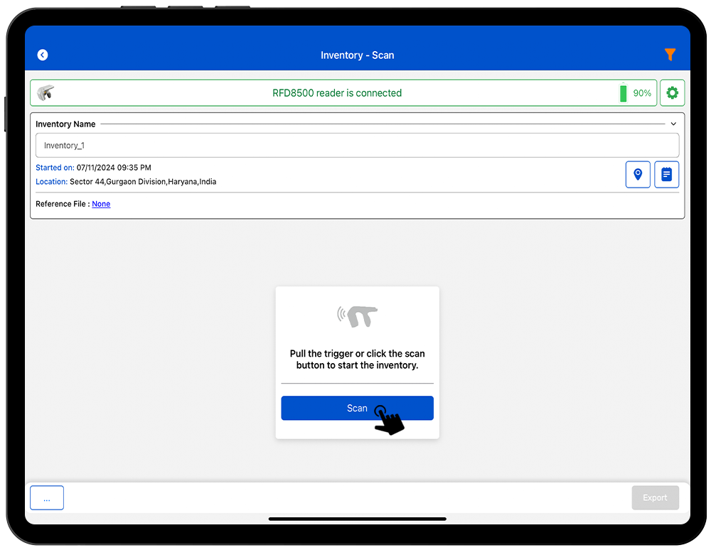 5. This means the RFD8500 reader is in polling state and reading the tags. Same can be seen in the application window. Refer below image: Fig 1.1.
