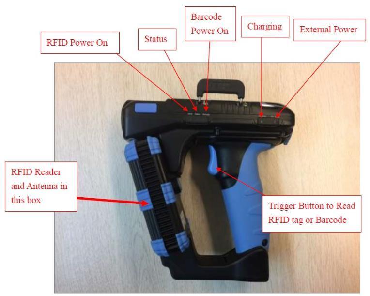 11. Simultaneously the “RFID” LED light up solid YELLOW & “Barcode” LED light up solid BLUE.