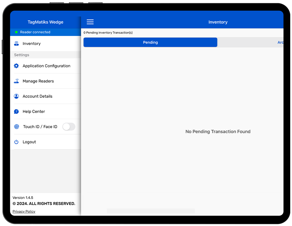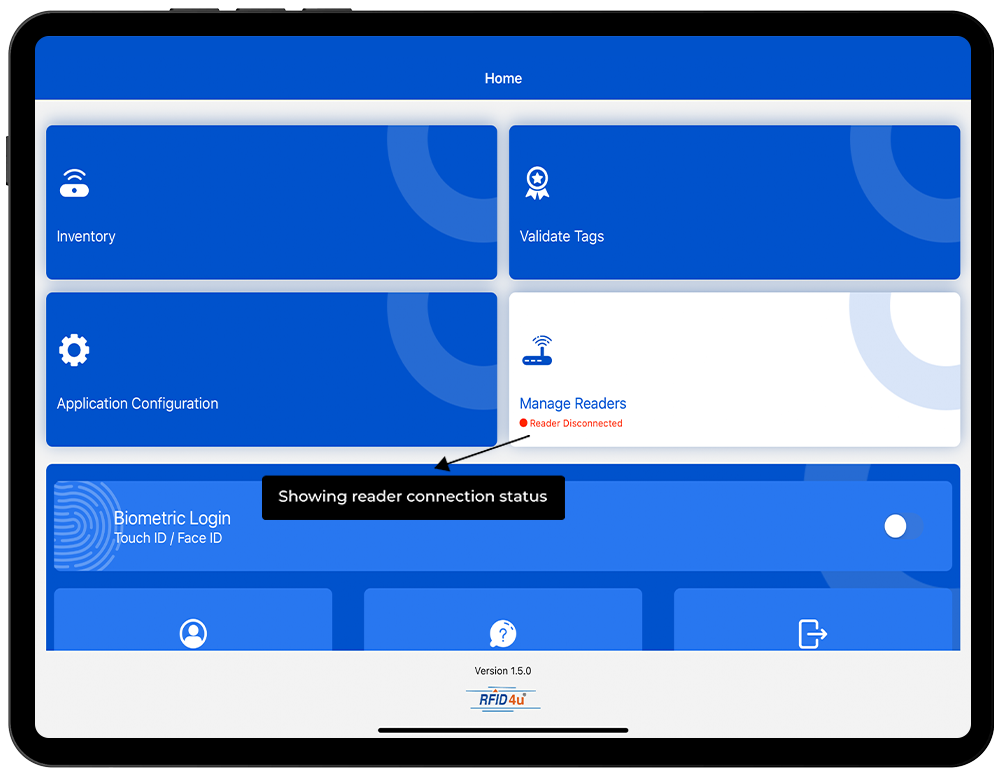 3. As no RFID reader is paired with the IOS device, thus the status is shown as "Reader Disconnected".